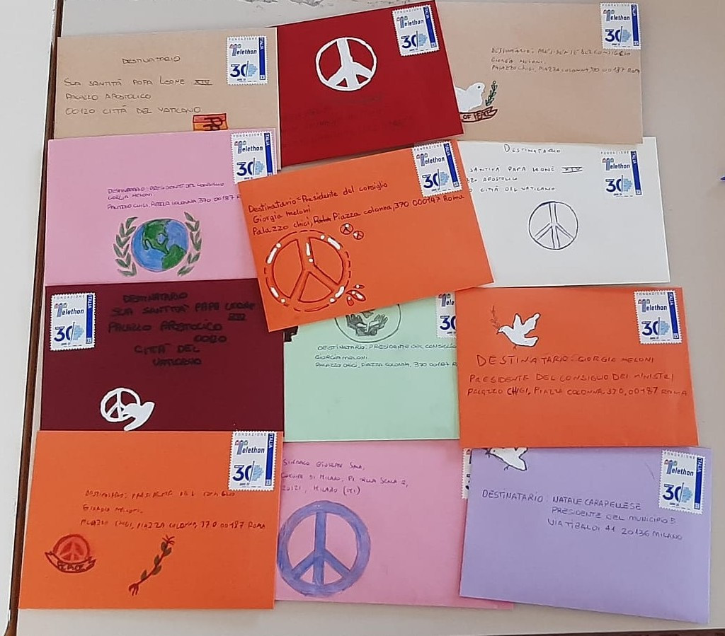 Per questo, molti studenti del IC di Via Palmieri hanno aderito all’iniziativa “Lettere di pace”, lanciata dai docenti del MCE (Movimento di cooperazione educativa) e hanno mandato le loro lettere, cartacee e affrancate, concrete e colorate, a “chi può” fare qualcosa per promuovere la pace: ad amministratori locali, politici, capi di governo, perfino al papa. Bambine e bambini, ragazze e ragazzi hanno fatto sentire la loro voce, hanno espresso la loro opinione, hanno posto domande, hanno avanzato proposte, con semplicità e chiarezza.